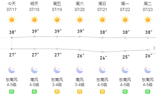 今天最高氣溫:37~38℃,高于昨天1度左右