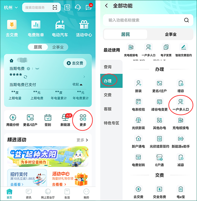 ①網(wǎng)上國網(wǎng)App首頁點擊【更多】-【辦理】-【一戶多人口】。