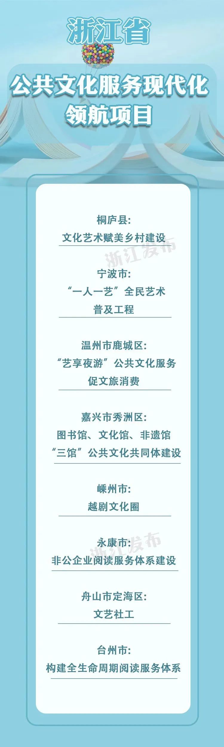 日前,省政府印發(fā)《關于命名浙江省公共文化服務現(xiàn)代化先行縣(市、區(qū))和領航項目的通知》,決定命名杭州市余杭區(qū)等11個縣(市、區(qū))為浙江省公共文化服務現(xiàn)代化先行縣(市、區(qū)),命名桐廬縣文化藝術賦美鄉(xiāng)村建設等8個項目為浙江省公共文化服務現(xiàn)代化領航項目。紹興柯橋區(qū)和嵊州市榜上有名。