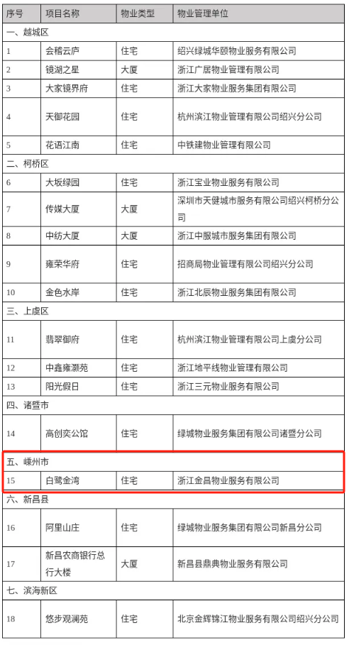 2024年度紹興市物業(yè)管理優(yōu)秀住宅小區(qū)(大廈)考評結(jié)果公示名單