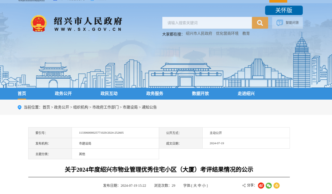 近日,紹興市人民政府發(fā)布了一則《關(guān)于2024年度紹興市物業(yè)管理優(yōu)秀住宅小區(qū)(大廈)考評結(jié)果情況的公示》。