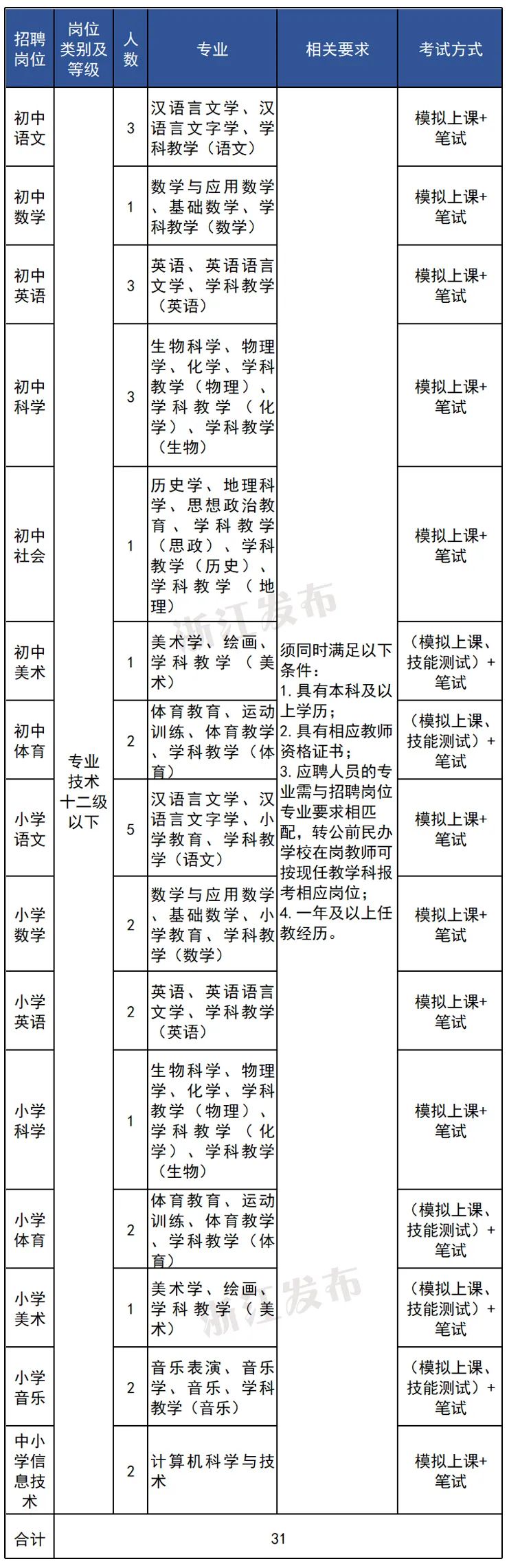 金華經(jīng)濟(jì)技術(shù)開(kāi)發(fā)區(qū)下屬轉(zhuǎn)公學(xué)校面向金華市區(qū)義務(wù)教育段學(xué)校非編在崗教師招聘37名事業(yè)編制教師。