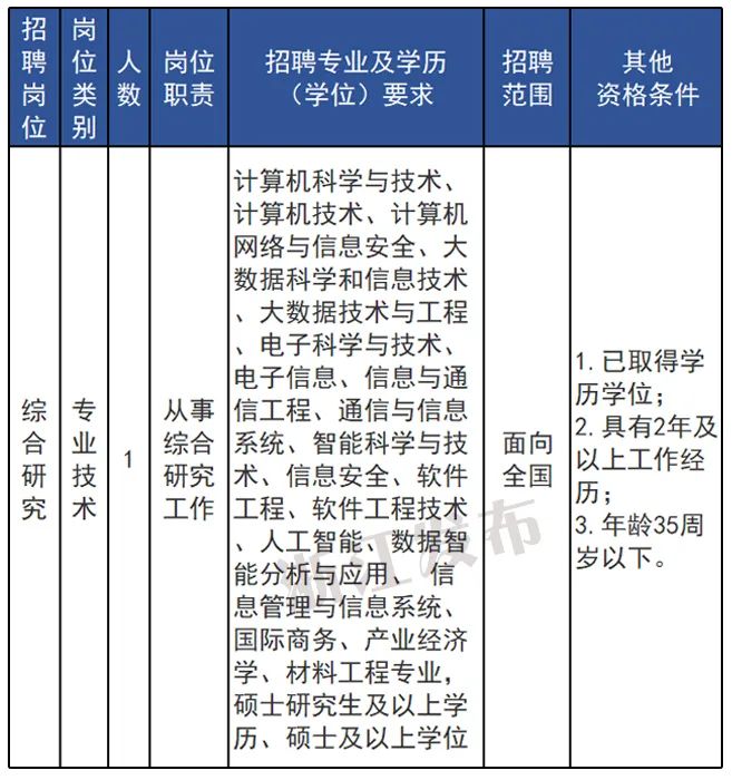 面向全國(guó)公開(kāi)招聘事業(yè)編制工作人員1名。