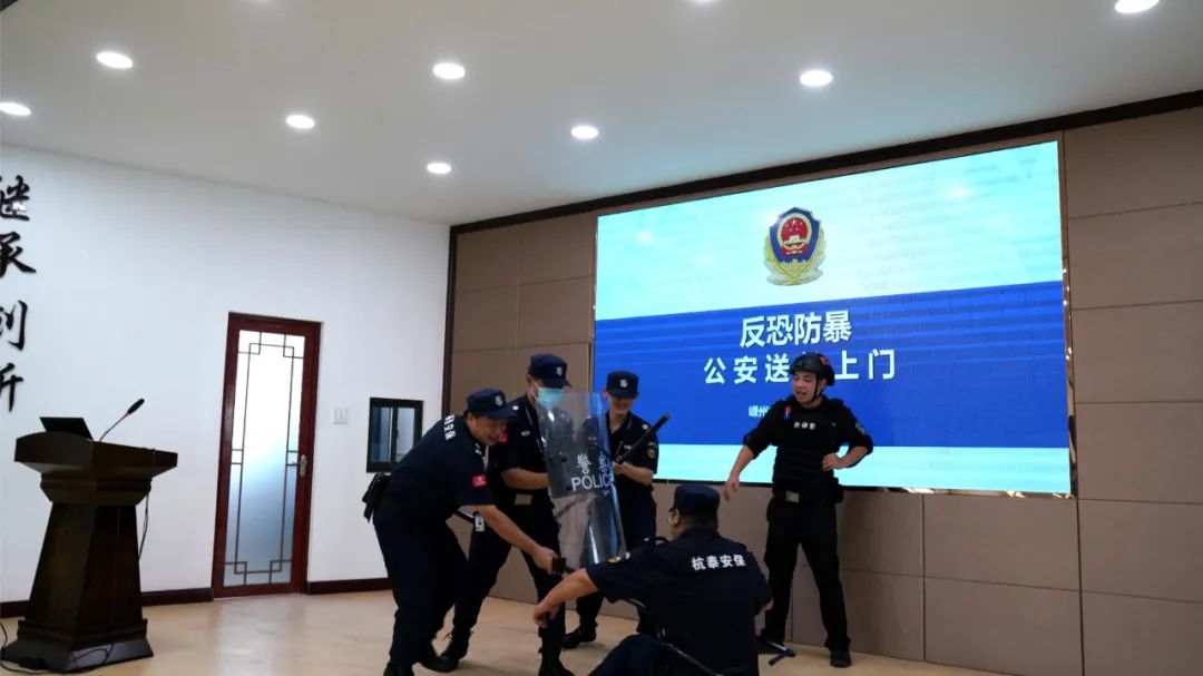 “要與對方保持3-5米的安全距離”、“手持盾牌,雙肘夾緊……”臺(tái)上,嵊州市公安局巡特警大隊(duì)正在為醫(yī)院保安從業(yè)人員講解演示動(dòng)作要領(lǐng)。