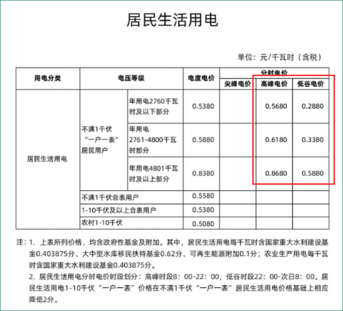 峰時段電價是0.8680元/千瓦時,谷時段電價是0.5880元/千瓦時。