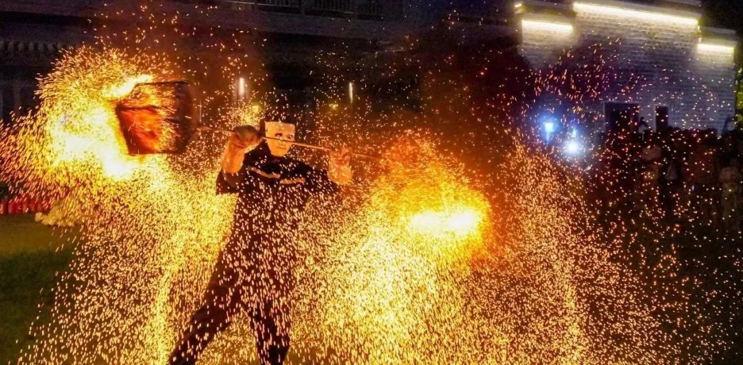 非遺火壺,以火為媒,以壺為載。每一次擊打,每一次拋灑,都充滿了韻律和節(jié)奏,仿佛訴說著千年的故事。而那瀑布煙花真就映襯了“飛流之下三千尺,疑似銀河落九天”。