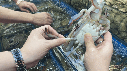 挑選梭子蟹的第一步就是用手先掂一掂重量,一般來說差不多大小的情況下越重的就越肥,但這也不能保證螃蟹百分百肥美,所以還要結(jié)合后面的步驟。