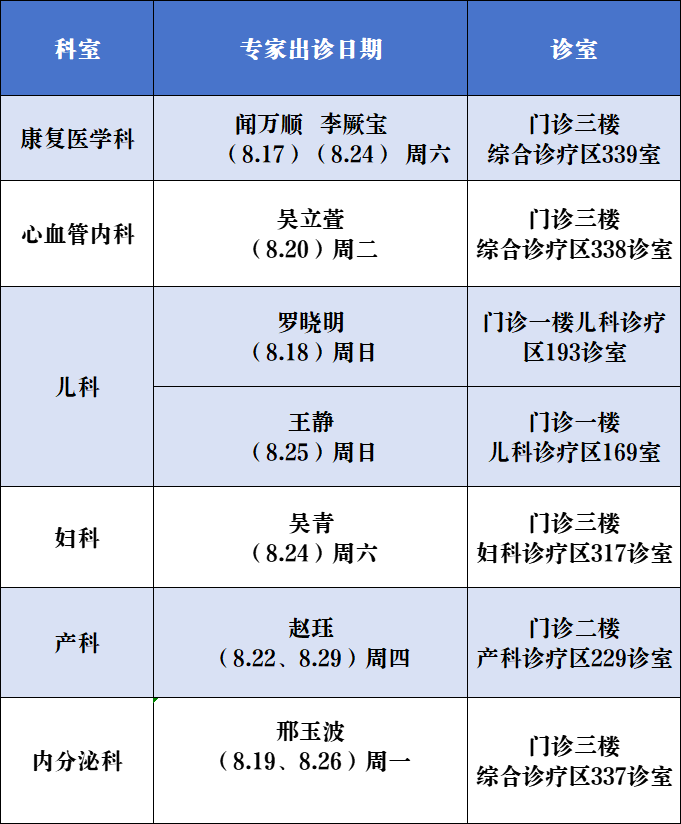 8月17日~8月31日,浙江省人民醫(yī)院有哪些專家到嵊州分院市婦幼保健院坐診呢?小編為有需要的市民朋友羅列了以下表格和專家信息。