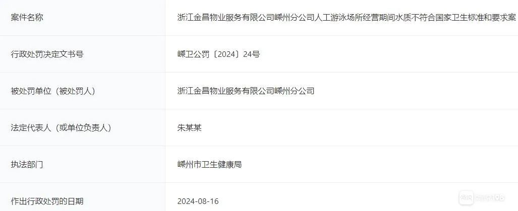 案件名稱:紹興市語涵物業(yè)有限公司人工游泳場所經(jīng)營期間水質(zhì)不符合國家衛(wèi)生標(biāo)準(zhǔn)和要求案