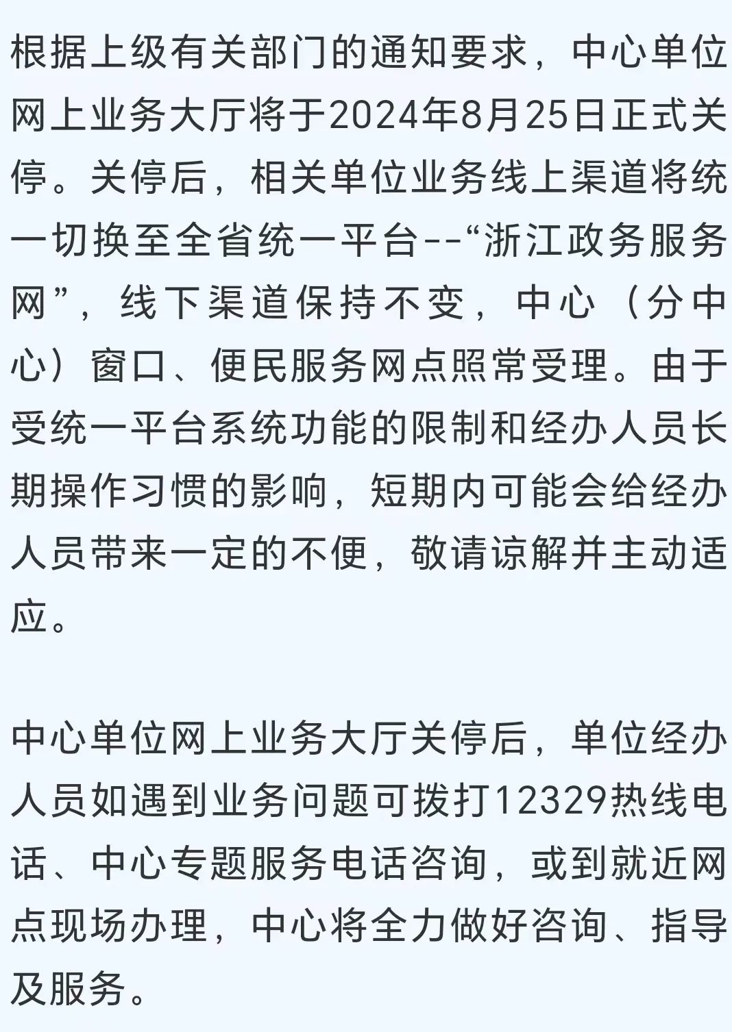 8月23日,紹興市住房公積金中心發(fā)布關(guān)于公積金單位網(wǎng)上業(yè)務(wù)大廳關(guān)停的公告。