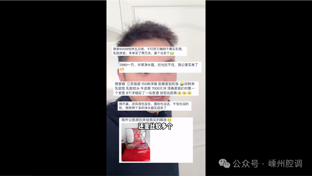 該博主在視頻中勸誡自己的奶奶不要在誘導下購買保健品或者凈水器。視頻一經(jīng)發(fā)出,引發(fā)了不少網(wǎng)友的評論:“我婆婆一年到頭不知道要買多少這種產(chǎn)品”“我老爸老媽也要去”“防不勝防”……