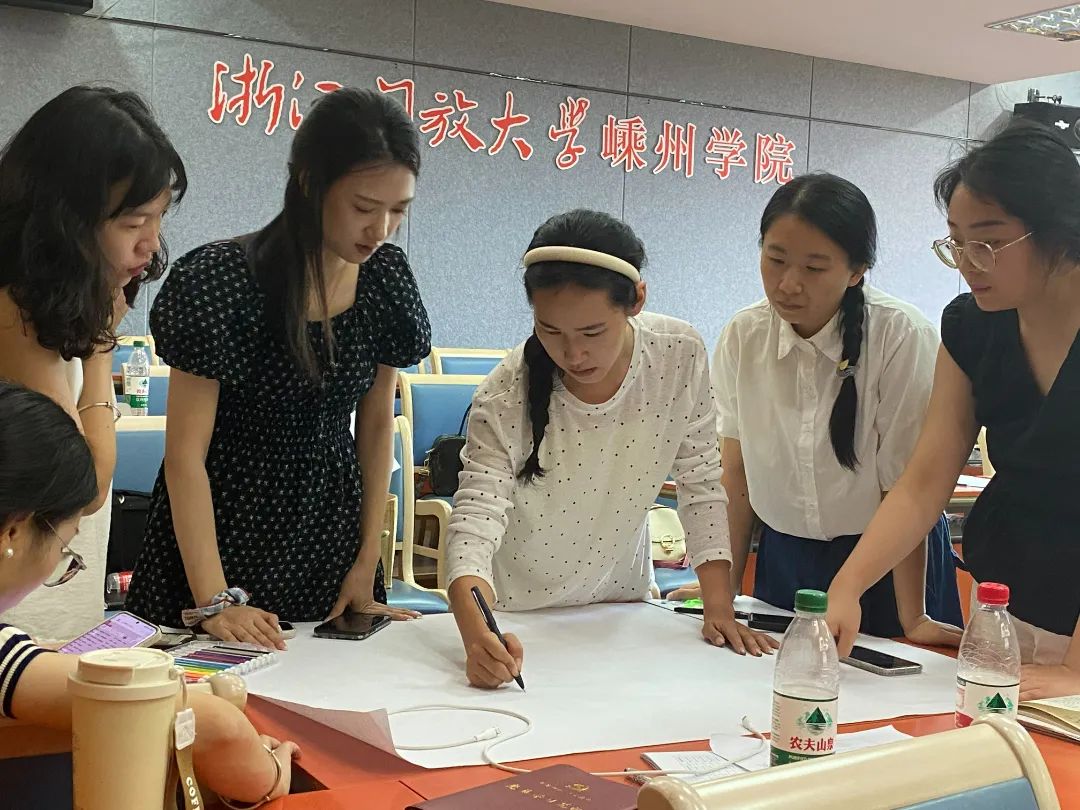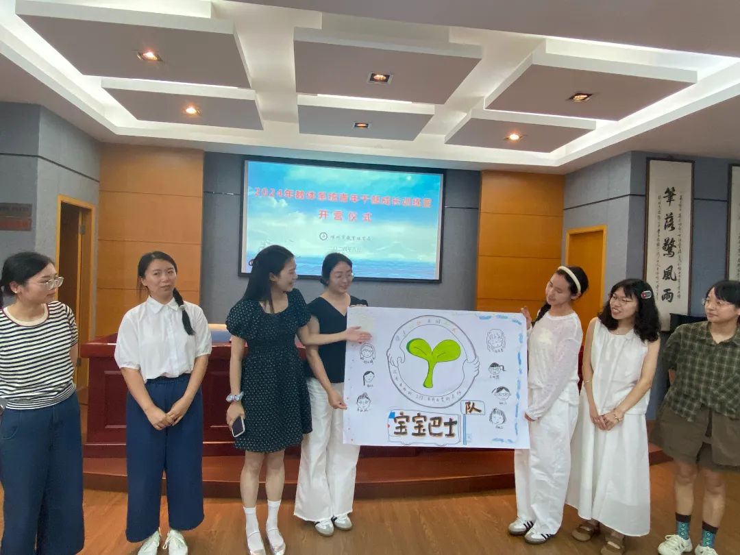為迅速促進(jìn)互相了解,凝聚團(tuán)隊(duì)精神,成長(zhǎng)訓(xùn)練營(yíng)組織了一場(chǎng)別開(kāi)生面的“破冰”活動(dòng)。青年教師分別上臺(tái)作自我介紹后以小組為單位為開(kāi)展活動(dòng),推薦小組長(zhǎng)、分配組員任務(wù)、設(shè)計(jì)小組Logo、制作宣傳海報(bào)等。在展示環(huán)節(jié)中,青年干部們展現(xiàn)了對(duì)教育的理解,表達(dá)了為“鋒領(lǐng)剡育”貢獻(xiàn)青年力量的決心。