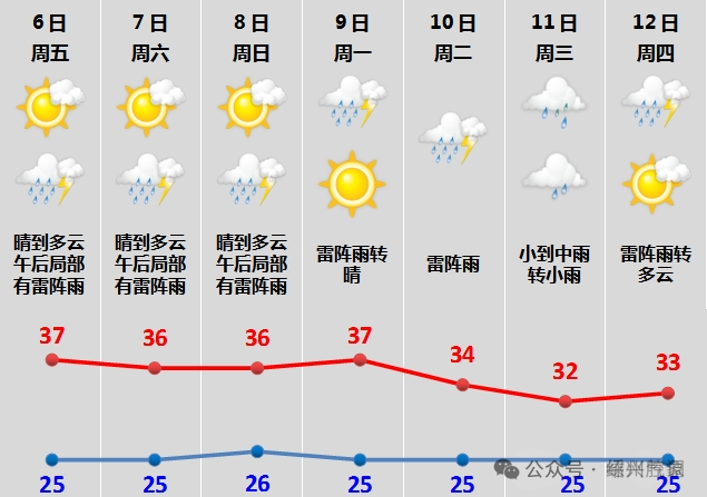 受副熱帶高壓控制,近期我市持續(xù)晴熱高溫天氣,最高氣溫可達35~37℃,請注意做好防暑降溫工作。