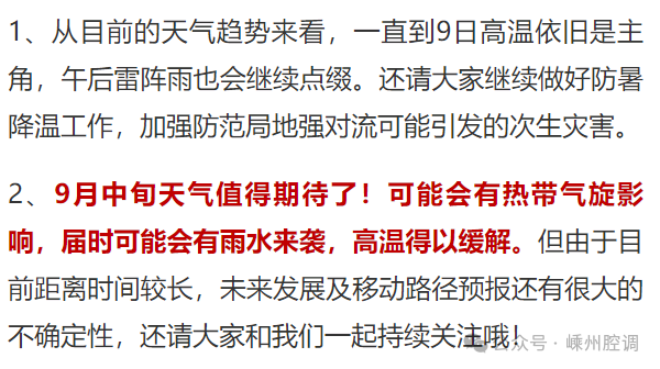 已經(jīng)9月了,南有臺風(fēng)活躍,北有冷空氣滲透,但咱這高溫絲毫沒有退卻的意思。昨天紹興市沒有明顯降水,只有分散性雷陣雨。最高氣溫出現(xiàn)在新昌站37.6℃。預(yù)計今天最高氣溫也會升至37℃左右。