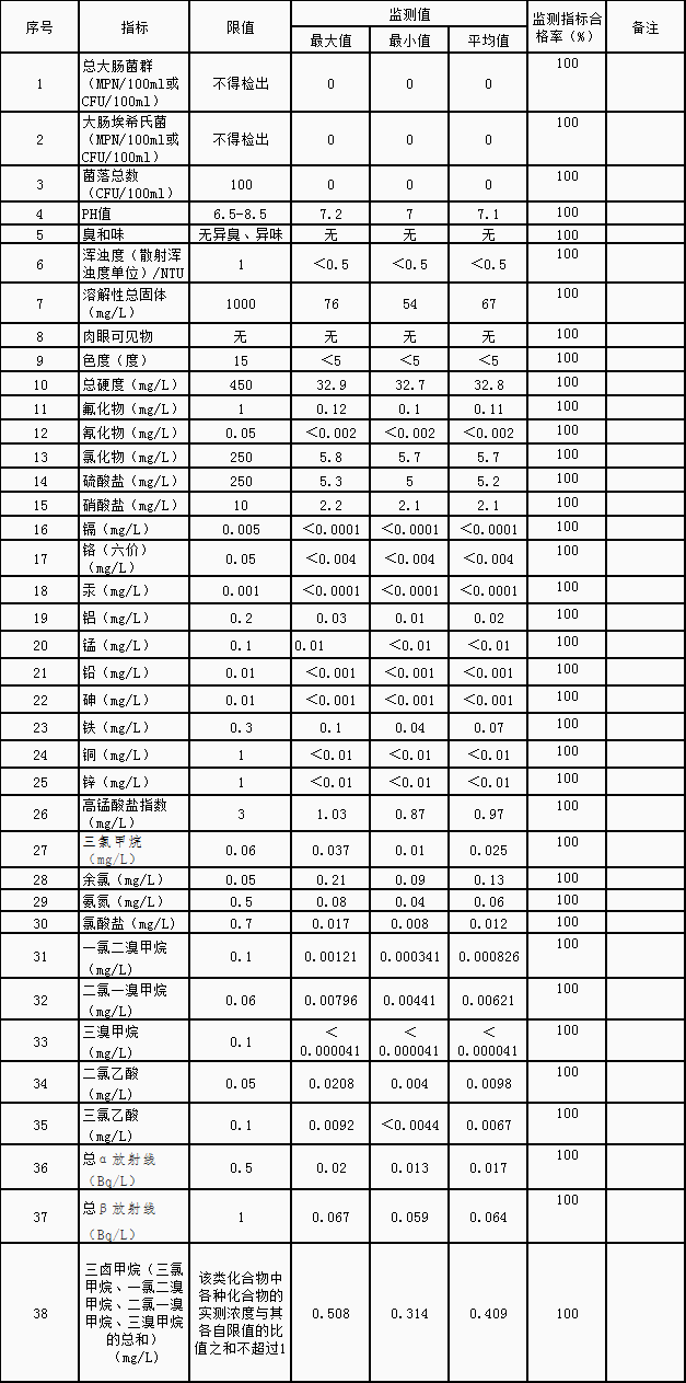 用戶水龍頭水質(zhì)監(jiān)測合格率