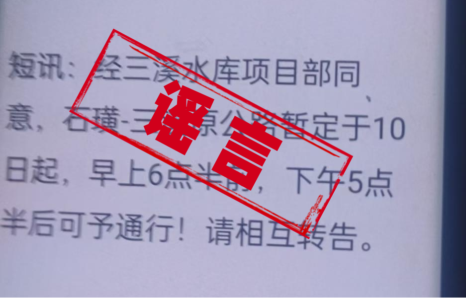 近日,有個別人員通過抖音、微信群、朋友圈等渠道發(fā)布“石璜-三溪原公路自9月10日起部分時間段可予通行”的網(wǎng)絡言論,經(jīng)核實,情況失實,并無部分時段可通行的通知公告,相關單位正在通過法律手段依法追究發(fā)布者的法律責任,請大家切勿信謠傳謠!