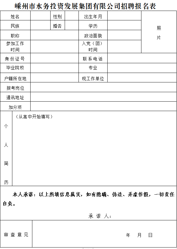 1.嵊州市水務(wù)投資發(fā)展集團有限公司招聘報名表(附件2);