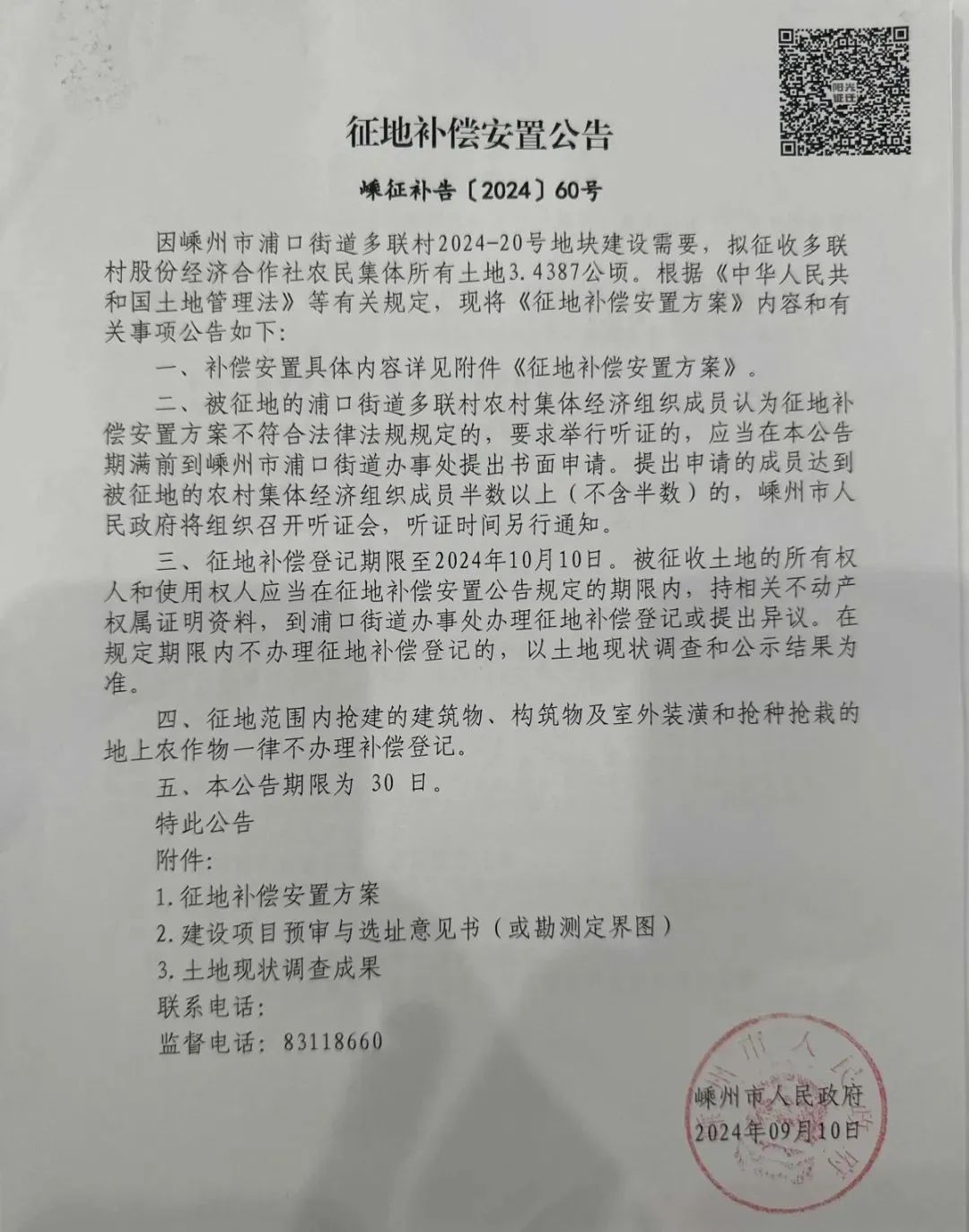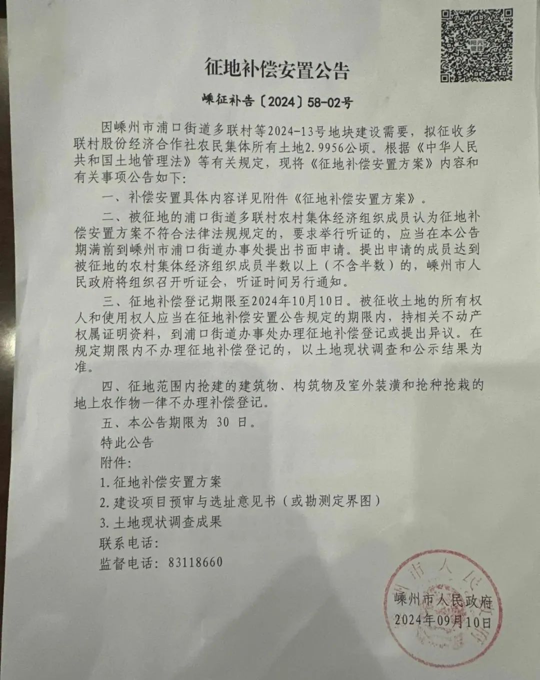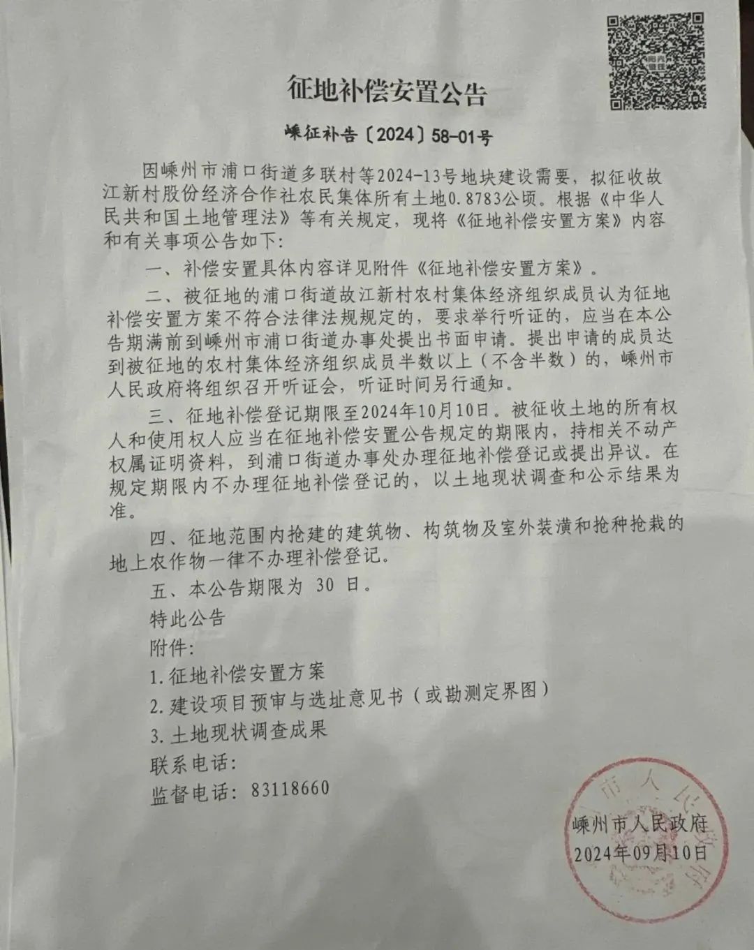 (嵊征補(bǔ)告〔2024〕58號(hào))