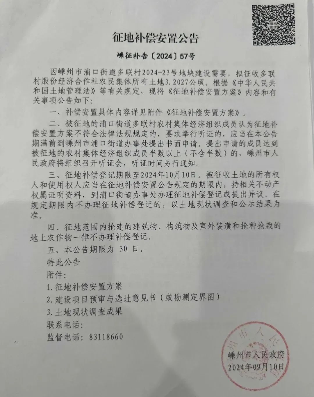 (嵊征補(bǔ)告〔2024〕57號(hào))