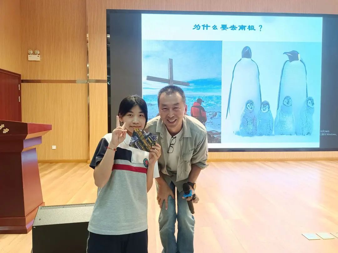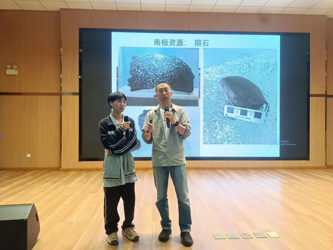 陳教授以淵博的知識(shí)、幽默風(fēng)趣的語(yǔ)言、親切的互動(dòng)方式,將南極冰雪世界生動(dòng)地展現(xiàn)在學(xué)生面前,從而揭開極地神秘的面紗,并從政治、經(jīng)濟(jì)、資源等方面介紹南極科考的重要意義,極大地點(diǎn)燃了學(xué)生探索世界的熱情。講座精彩紛呈,現(xiàn)場(chǎng)互動(dòng)氣氛熱烈,同學(xué)們掌聲不斷。