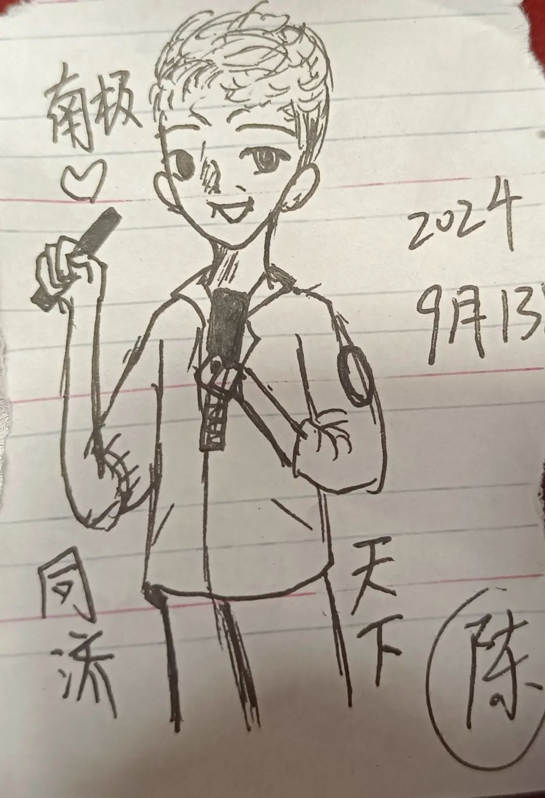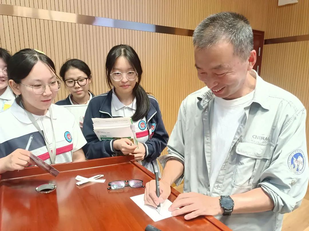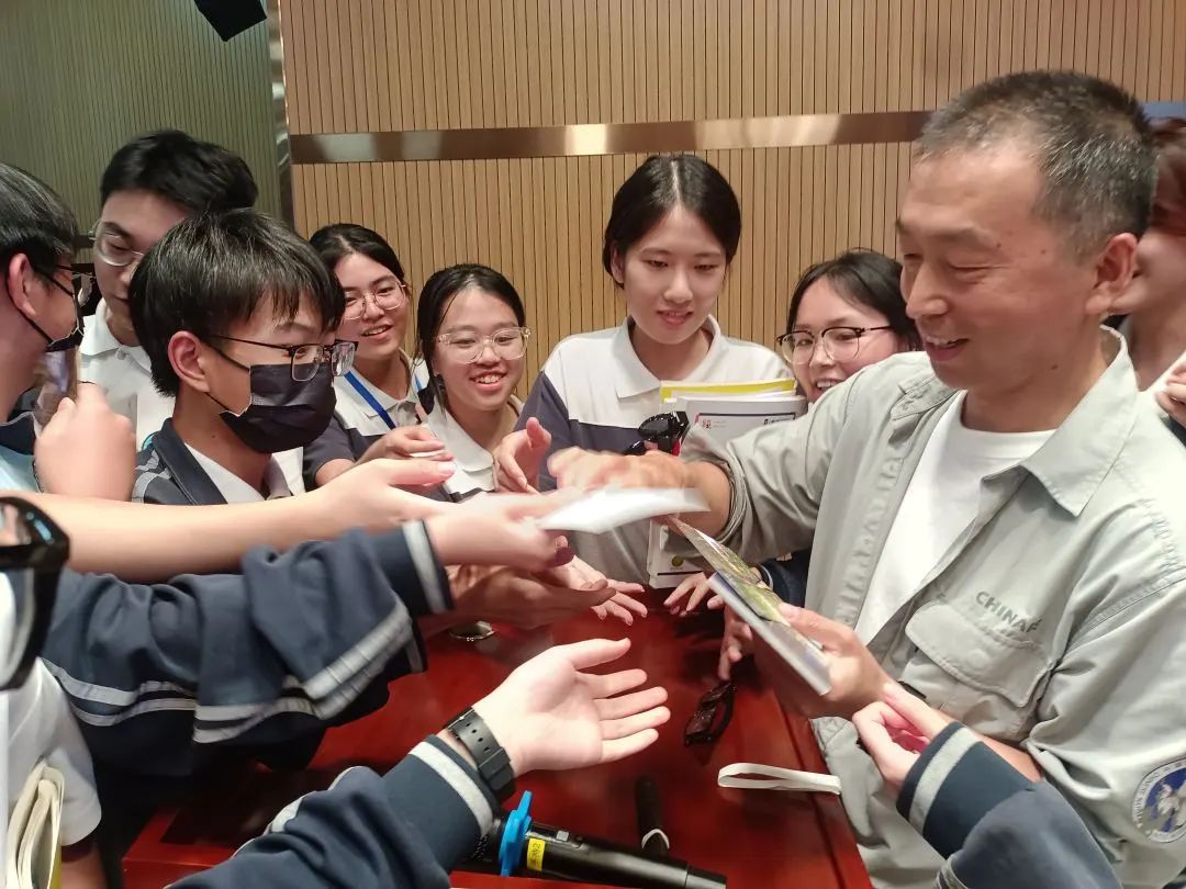 講座結(jié)束后,同學(xué)們意猶未盡,紛紛上臺(tái)和陳教授面對(duì)面交流,把陳教授團(tuán)團(tuán)圍住請(qǐng)求簽名,有一位學(xué)生為陳教授畫了一幅帥氣的畫像,并贈(zèng)送給他,以此表達(dá)對(duì)陳教授的崇敬和感謝。