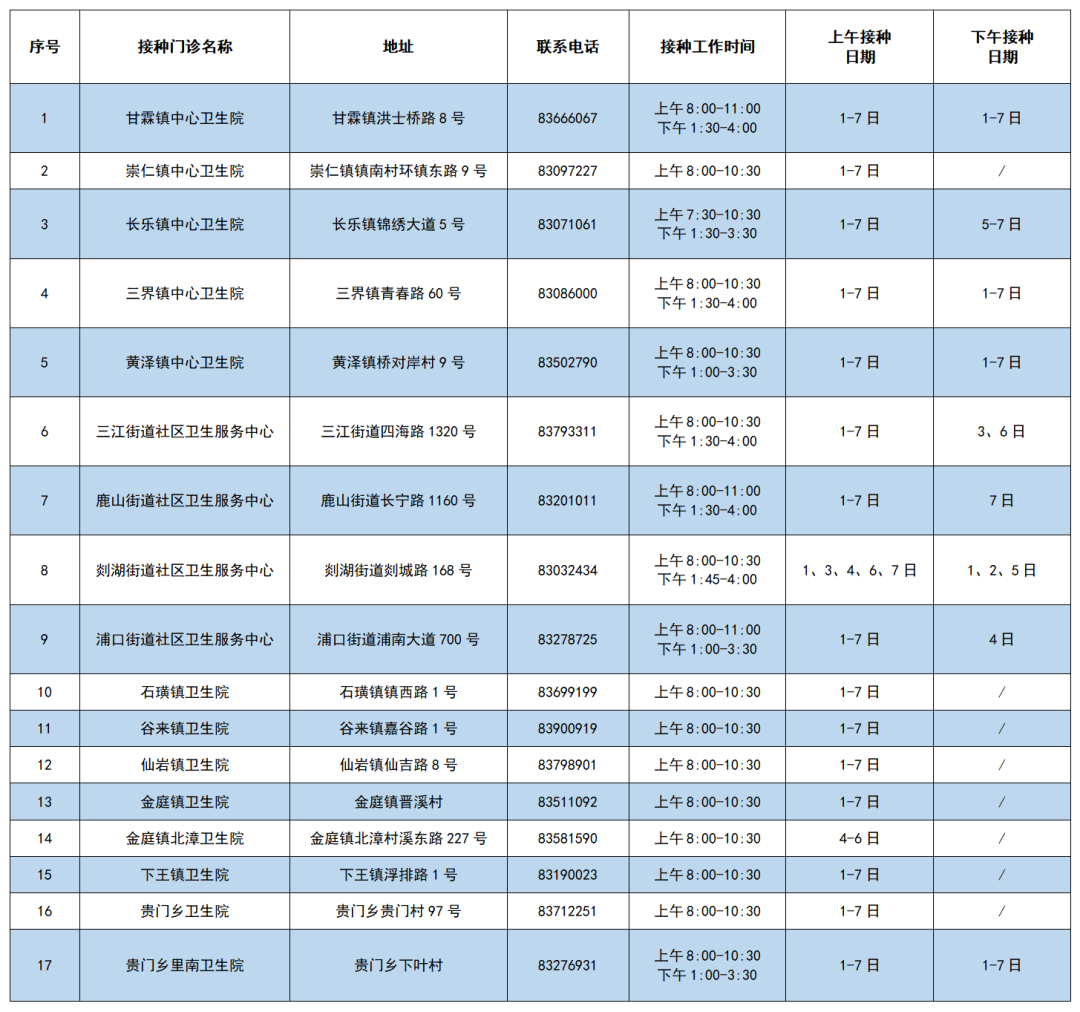 嵊州市國慶期間流感疫苗預(yù)防接種門診安排表