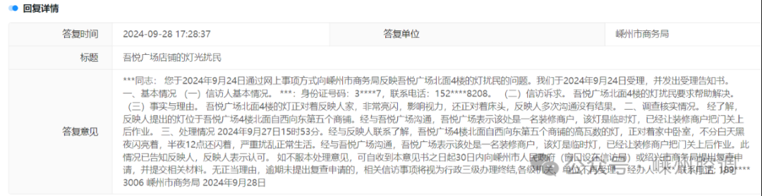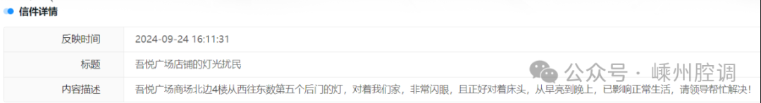 近日,有網(wǎng)友在浙江省民呼我為平臺上反應(yīng)有關(guān)“吾悅廣場店鋪的燈光擾民”的問題。