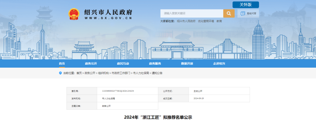 公示時(shí)間從2024年9月29日起至10月8日。如對(duì)擬推薦對(duì)象有異議的,可在公示期間以來(lái)訪來(lái)電形式向紹興市人力資源和社會(huì)保障局職業(yè)能力建設(shè)處反映。