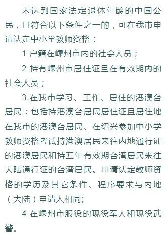 5.申請認(rèn)定中小學(xué)教師資格的港澳臺居民須提交由香港特別行政區(qū)、澳門特別行政區(qū)和臺灣地區(qū)有關(guān)部門開具的無犯罪記錄證明。如有需要,申請人可提前通過認(rèn)定機(jī)構(gòu)向浙江省教師資格認(rèn)定指導(dǎo)中心申請開具相關(guān)函件;