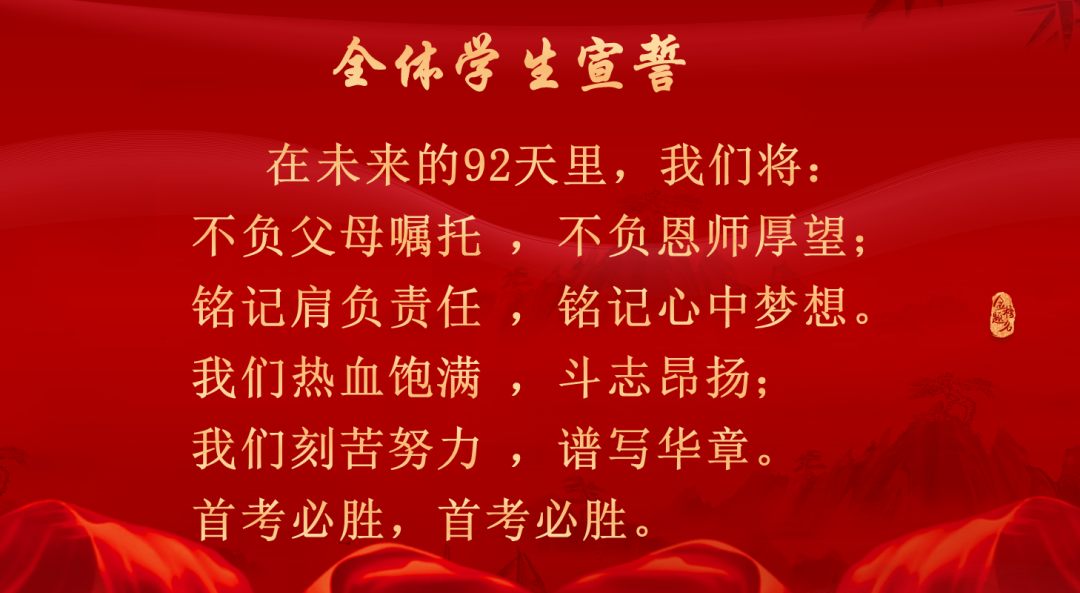 十年一劍堪磨礪,踔厲奮進(jìn)正當(dāng)時(shí)。沖鋒的號(hào)角在耳邊響徹,波瀾壯闊的畫卷盡情鋪展,為進(jìn)一步激發(fā)高三學(xué)子拼搏精神,堅(jiān)定師生迎戰(zhàn)首考的必勝信心,2024年10月6日下午16:00, 2025屆高三年級(jí)首考動(dòng)員大會(huì),在學(xué)校啟強(qiáng)樓一樓報(bào)告廳隆重舉行,高三全體師生共赴這場(chǎng)青春盛宴,見證了這一莊嚴(yán)而神圣時(shí)刻。