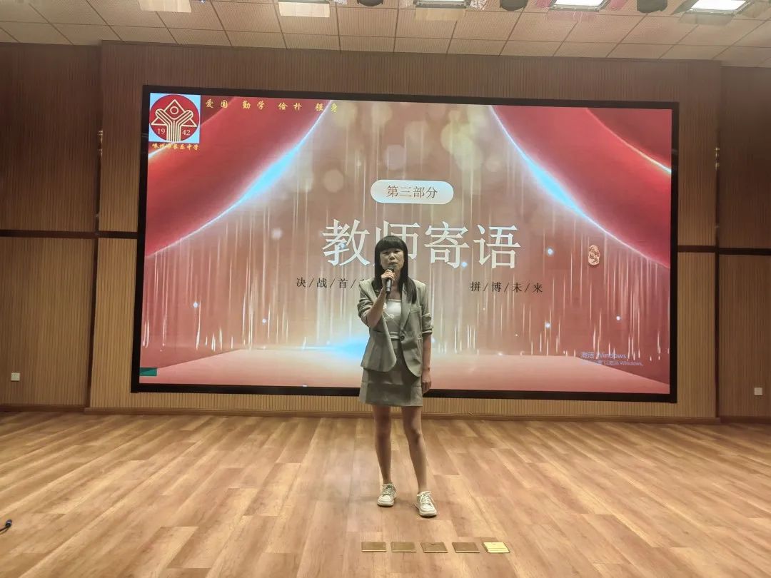 “少年的書桌上沒有虛度的光陰,每份努力皆有價(jià)值,十年磨一劍,看似波瀾不驚的日復(fù)一日,終會(huì)讓人看到堅(jiān)持的意義?!苯處煷韽埼⒋砣w高三教師發(fā)言,她結(jié)合自身的高三經(jīng)歷,鼓勵(lì)同學(xué)們要相信自己,揚(yáng)鞭策馬,用勤奮鋪平通往成功的道路,用拼搏增強(qiáng)躍上金榜的實(shí)力,同時(shí)向?qū)W生鄭重承諾:有你們的地方,有你們的時(shí)刻,就會(huì)有我們的身影,同舟共濟(jì),揚(yáng)帆遠(yuǎn)航,一起攜手并肩戰(zhàn)首考。