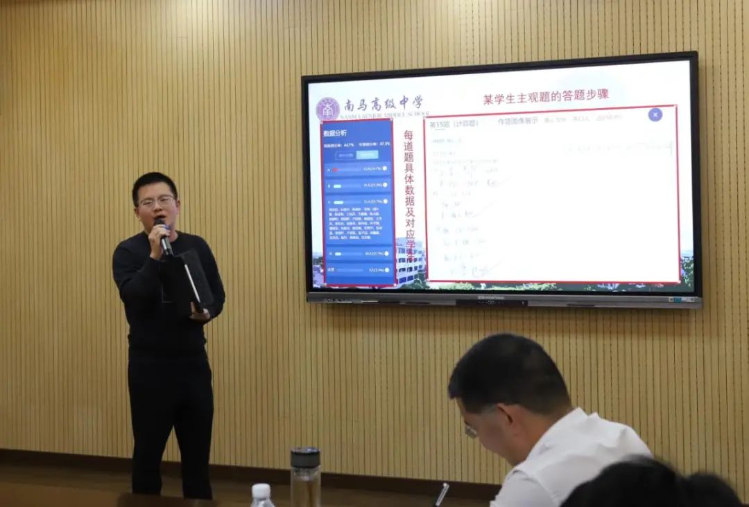 接著,柯橋區(qū)教師發(fā)展中心胡金錦副主任極其細致且全面地對本次高三 10 月聯(lián)考成績質(zhì)量展開了深入分析。通過清晰明了的圖表數(shù)據(jù),胡主任著重介紹了著重介紹了 10 月強基新表以及賦分等級表,提出一分一段賦分制,這樣就能夠更加公平、精準(zhǔn)地反映出學(xué)生們在考試中的真實水平和相對位置,為后續(xù)的教學(xué)工作提供了極具價值的參考依據(jù),也為學(xué)生們的學(xué)習(xí)方向和目標(biāo)設(shè)定提供了有力的指導(dǎo)。緊接著,胡主任特別分析了聯(lián)考成績中“單上線”、“雙上線”、“貢獻率”、“命中率”的問題,認為有的放矢、抓準(zhǔn)對象才是重中之重。然后,他從學(xué)科建設(shè)、教師培養(yǎng)、考試指導(dǎo)三方面對高三首考的沖刺提出了不少建設(shè)性的意見和建議。