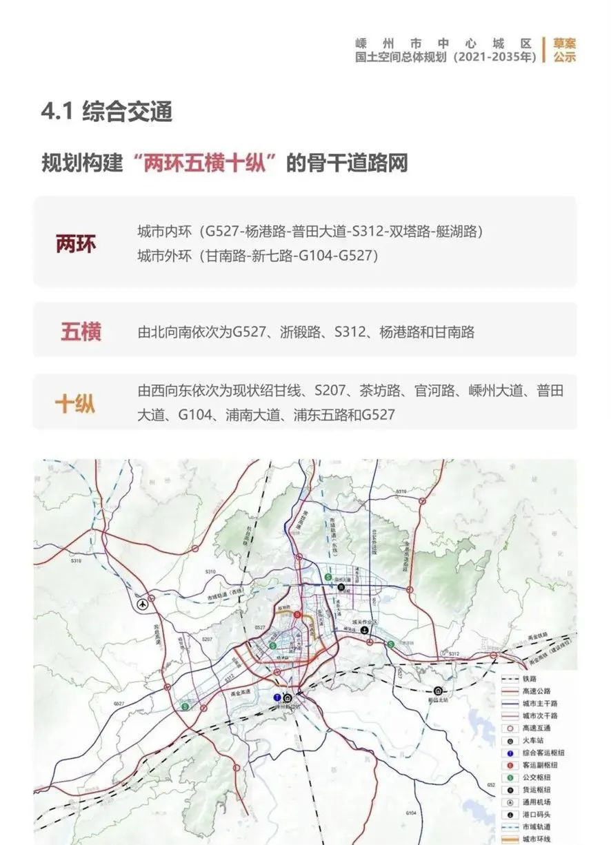 預(yù)留市域通用機(jī)場空間,依托杭臺高鐵、諸虞高速出入口、杭紹臺高速出入口、規(guī)劃諸暨至嵊州市域軌道,設(shè)崇仁站。