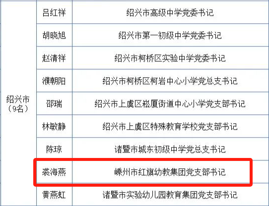 嵊州中學(xué)黨委和紅旗幼教集團(tuán)黨支部書記裘海燕成功入選。一起來看↓↓↓