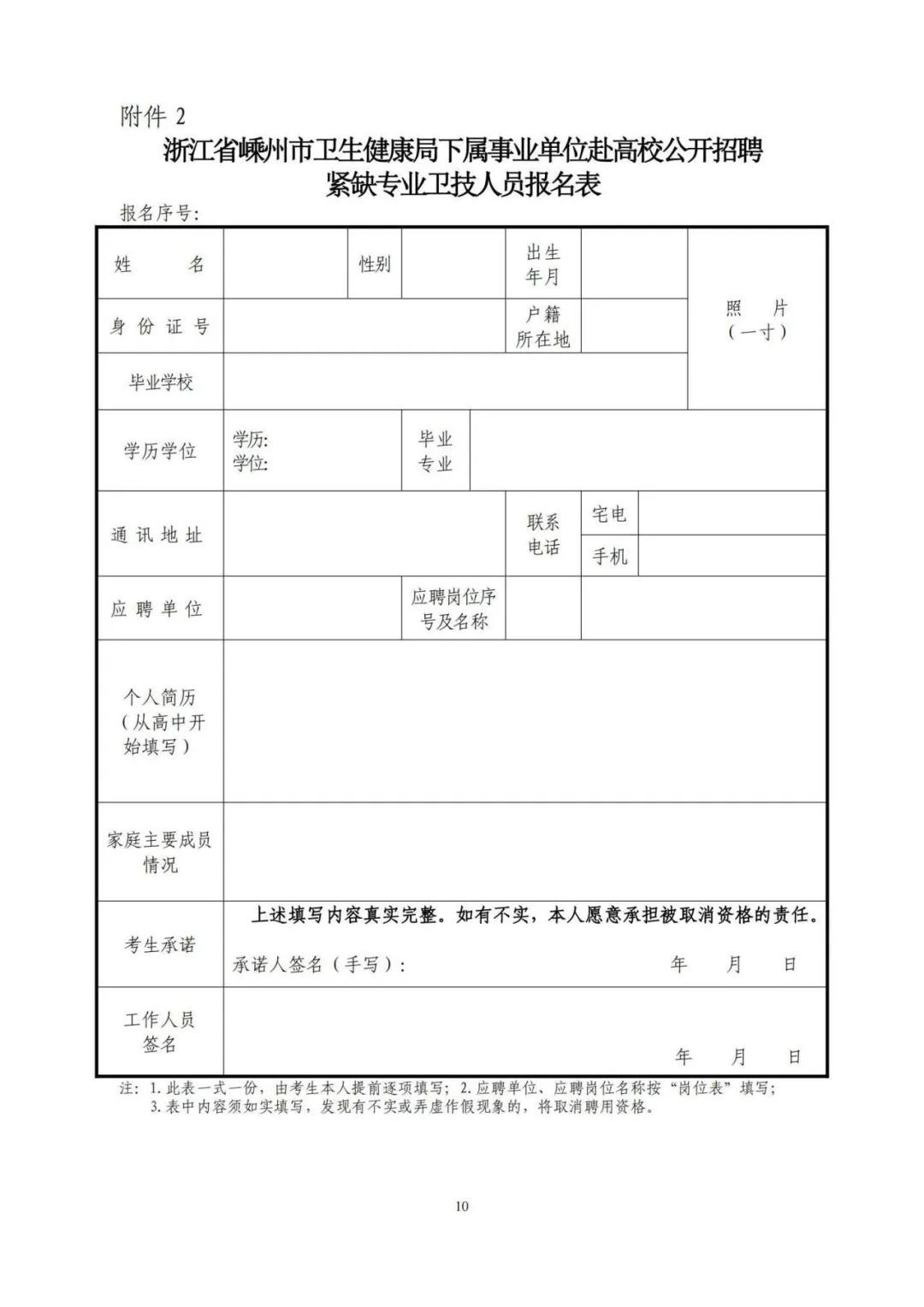 附件2:浙江省嵊州市衛(wèi)生健康局下屬事業(yè)單位赴高校公開招聘緊缺專業(yè)衛(wèi)技人員報(bào)名表