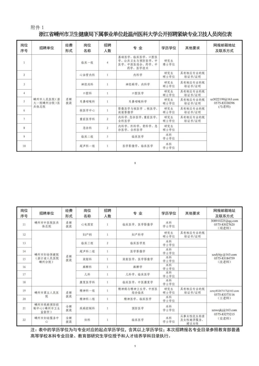 附件1:浙江省嵊州市衛(wèi)生健康局下屬事業(yè)單位赴溫州醫(yī)科大學(xué)公開招聘緊缺專業(yè)衛(wèi)技人員崗位表