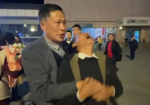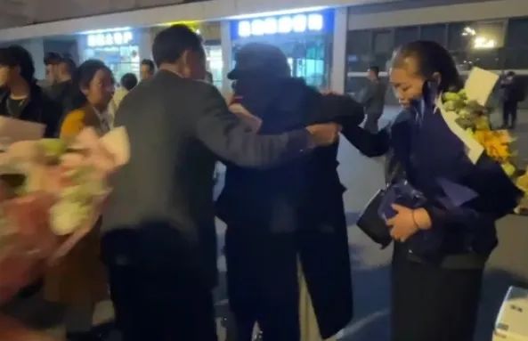 看到孩子走出出站口,他大喊著寶貝,朝女兒狂奔過去,一把抱住了她,全家人再一次緊緊相擁在一起。