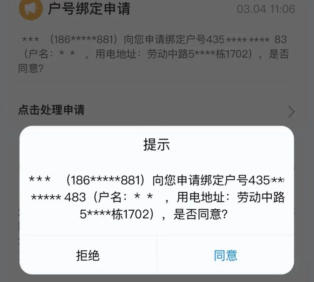 當(dāng)其他用戶綁定此戶號時,戶主將會收到網(wǎng)上國網(wǎng)App和短信平臺的提醒信息,戶主可同意或拒絕對方綁定您的戶號。