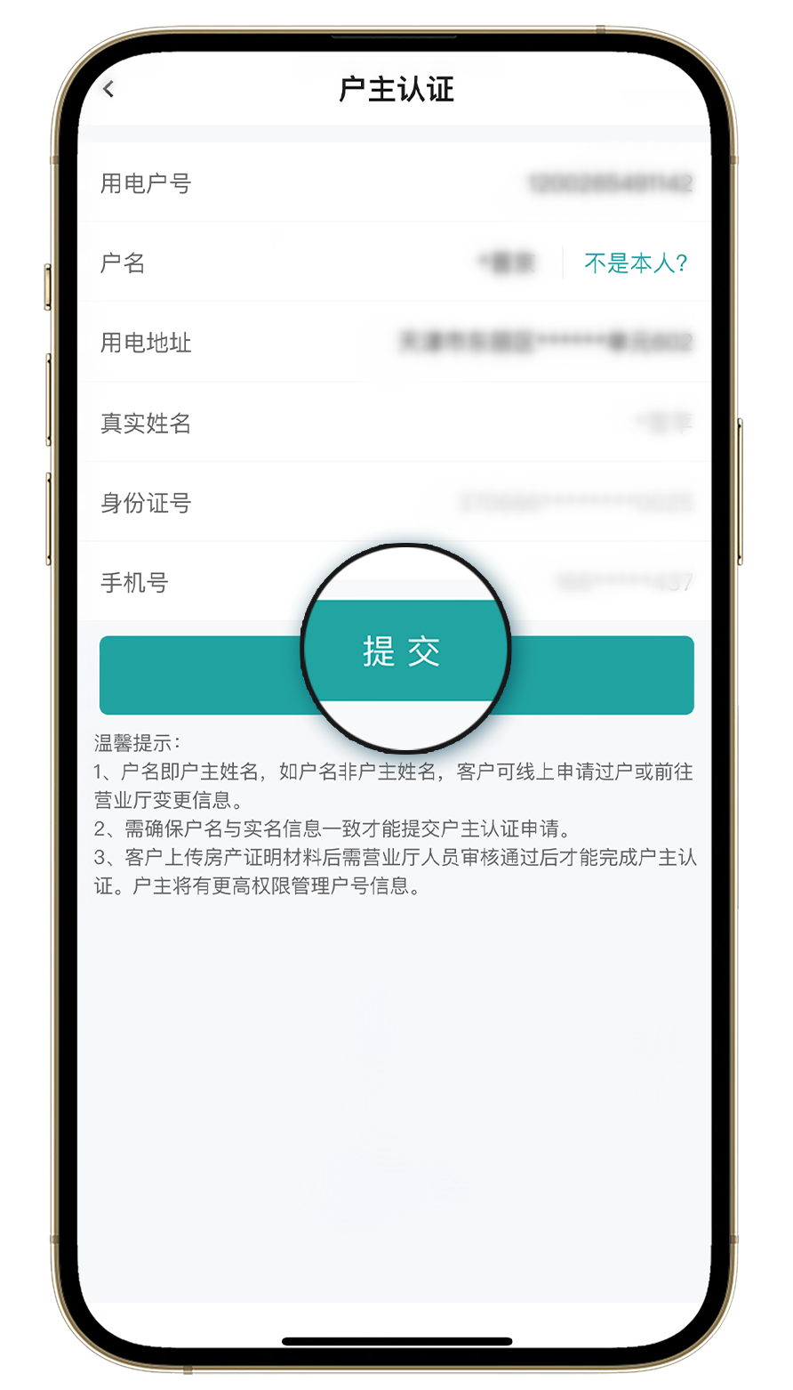 2. 需確保戶名與實名信息一致才能提交戶主認證申請。