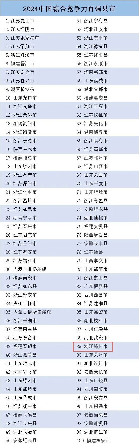 2024中國綜合競爭力百強縣市榜單發(fā)布!嵊州上榜