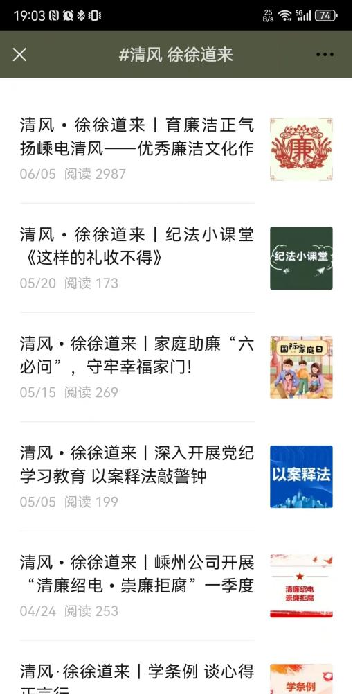 公眾號“清風·徐徐道來”專欄,宣傳家風家教、警示教育、黨紀法規(guī)
