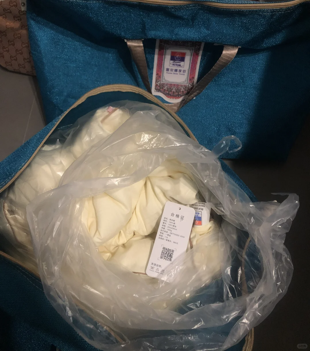 網(wǎng)友所購蠶絲被及贈(zèng)送的“四件套”