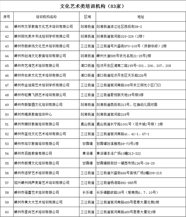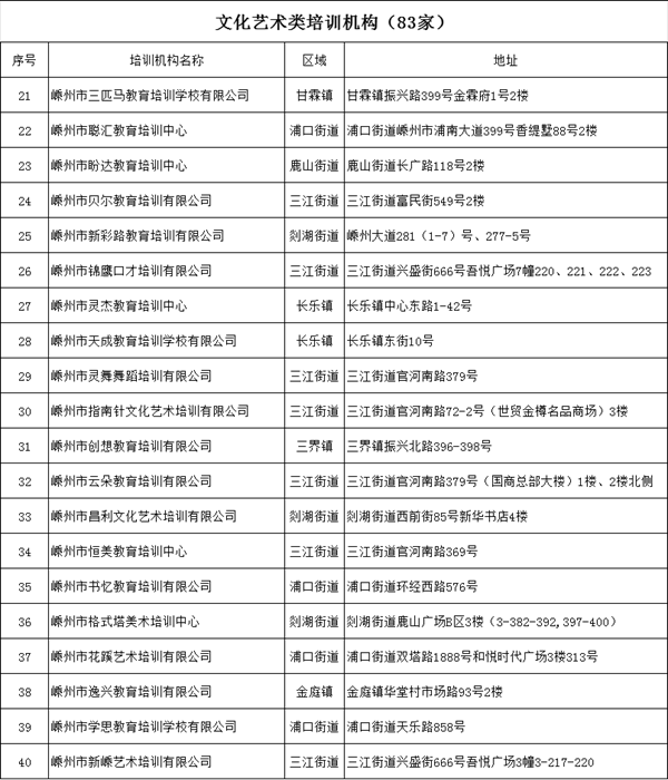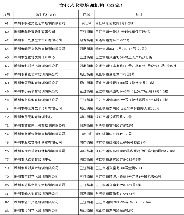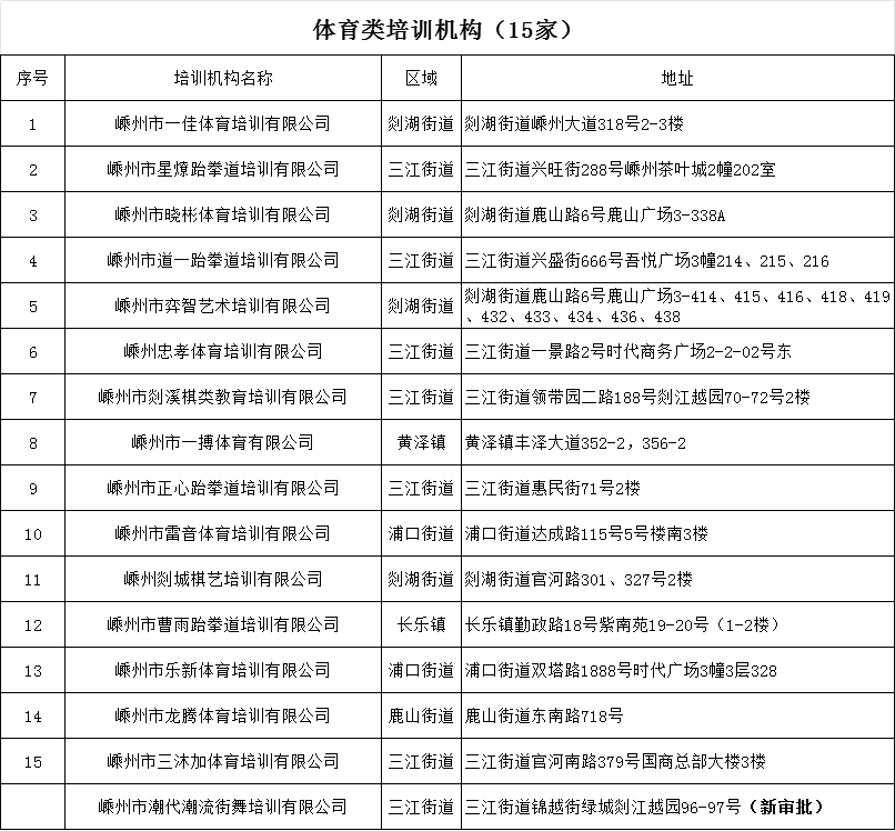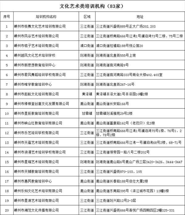 2024年寒假即將到來,為維護廣大家長和學生的合法權益,現(xiàn)公布嵊州市已入駐全國校外教育培訓監(jiān)管與服務綜合平臺的非學科類培訓機構名單,總數(shù)100家,其中體育類15家,文化藝術類83家,科技類2家。詳情如下(排名不分先后):