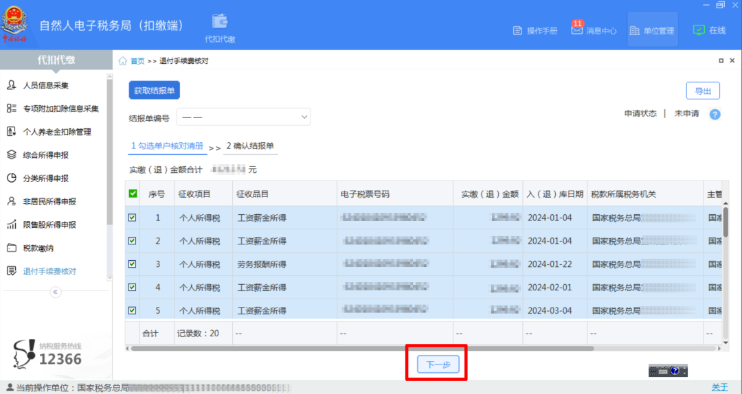 勾選單戶核對(duì)清冊(cè),點(diǎn)擊【下一步】。