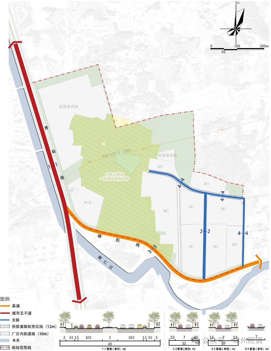 結合道路現(xiàn)狀,分級設置,在現(xiàn)狀道路基礎上,規(guī)范內(nèi)部場地道路布局。道路等級分為縣道、城市主干道和城市支路三級??h道:嵊松線;城市主干道:秀仙線;城市支路:廠區(qū)內(nèi)部道路。