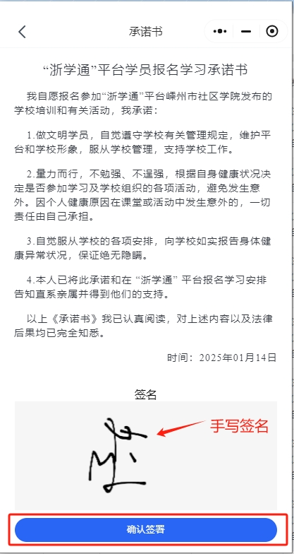 2.報名流程:掃“浙學通”小程序碼→立即報名→承諾書簽名→填寫報名信息→選擇報名科目→報名成功