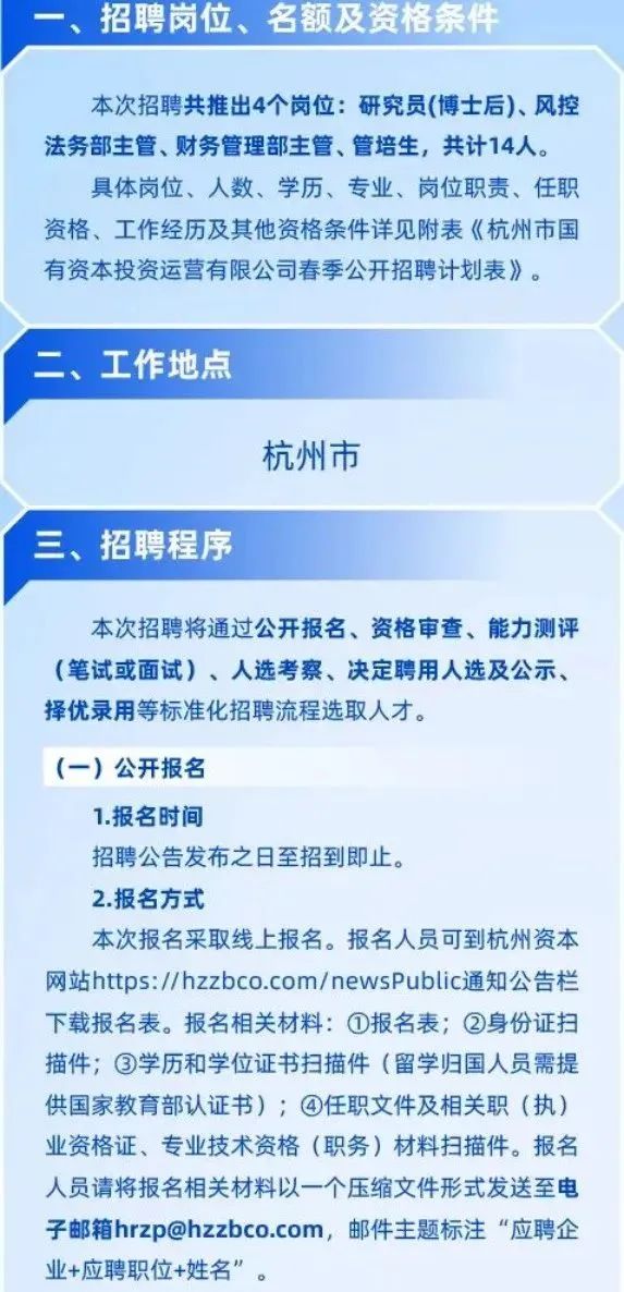 報(bào)名時間截至3月18日17時。報(bào)名人員登錄環(huán)投集團(tuán)招聘報(bào)名系統(tǒng)https://zp.xswater.com:8111,按要求填寫《杭州蕭山環(huán)投集團(tuán)2025年上半年招聘報(bào)名表》,并上傳戶籍證明、身份證、學(xué)歷(學(xué)位)證書、職稱(執(zhí)業(yè)資格)證書等其他佐證材料掃描件。