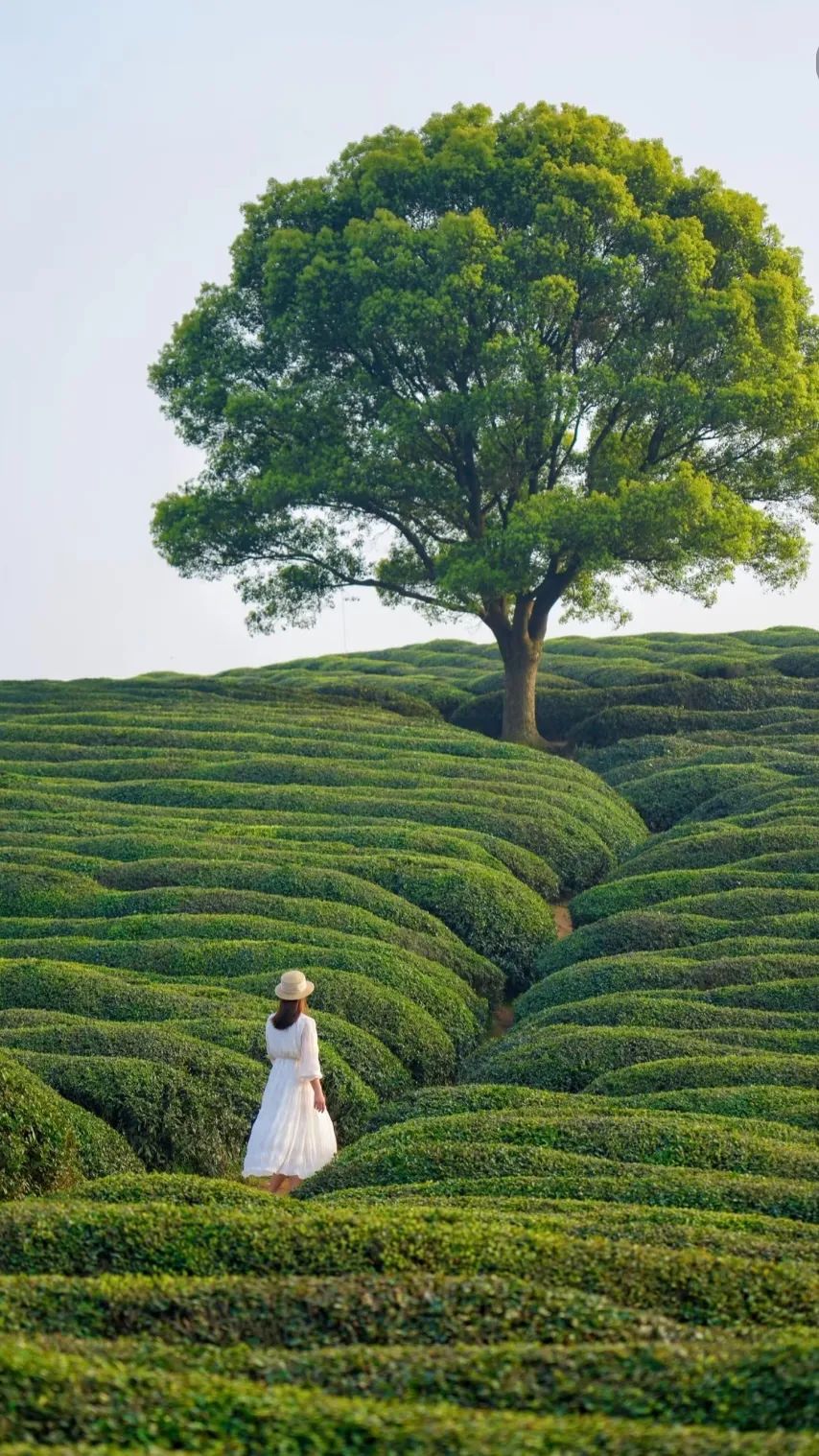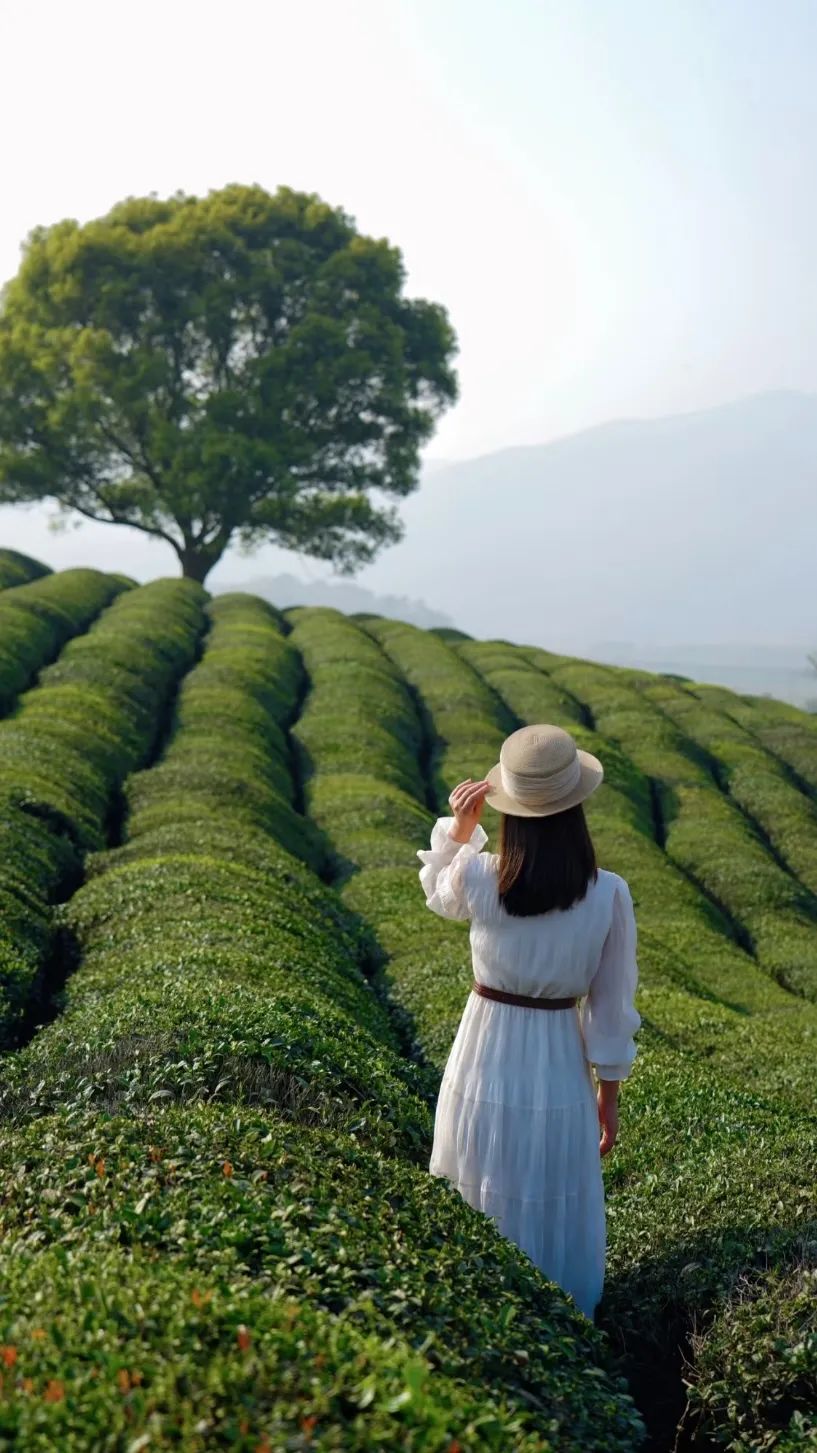 薄霧像一層輕紗,緩緩從山間滑落,覆在茶樹(shù)上,為它們披上了一件朦朧的外衣。茶樹(shù)一排排,整齊地站在山坡上,嫩綠的尖兒上掛著晶瑩的水珠微微顫動(dòng),風(fēng)一吹,水珠便滾落下來(lái),悄無(wú)聲息地滲入泥土。