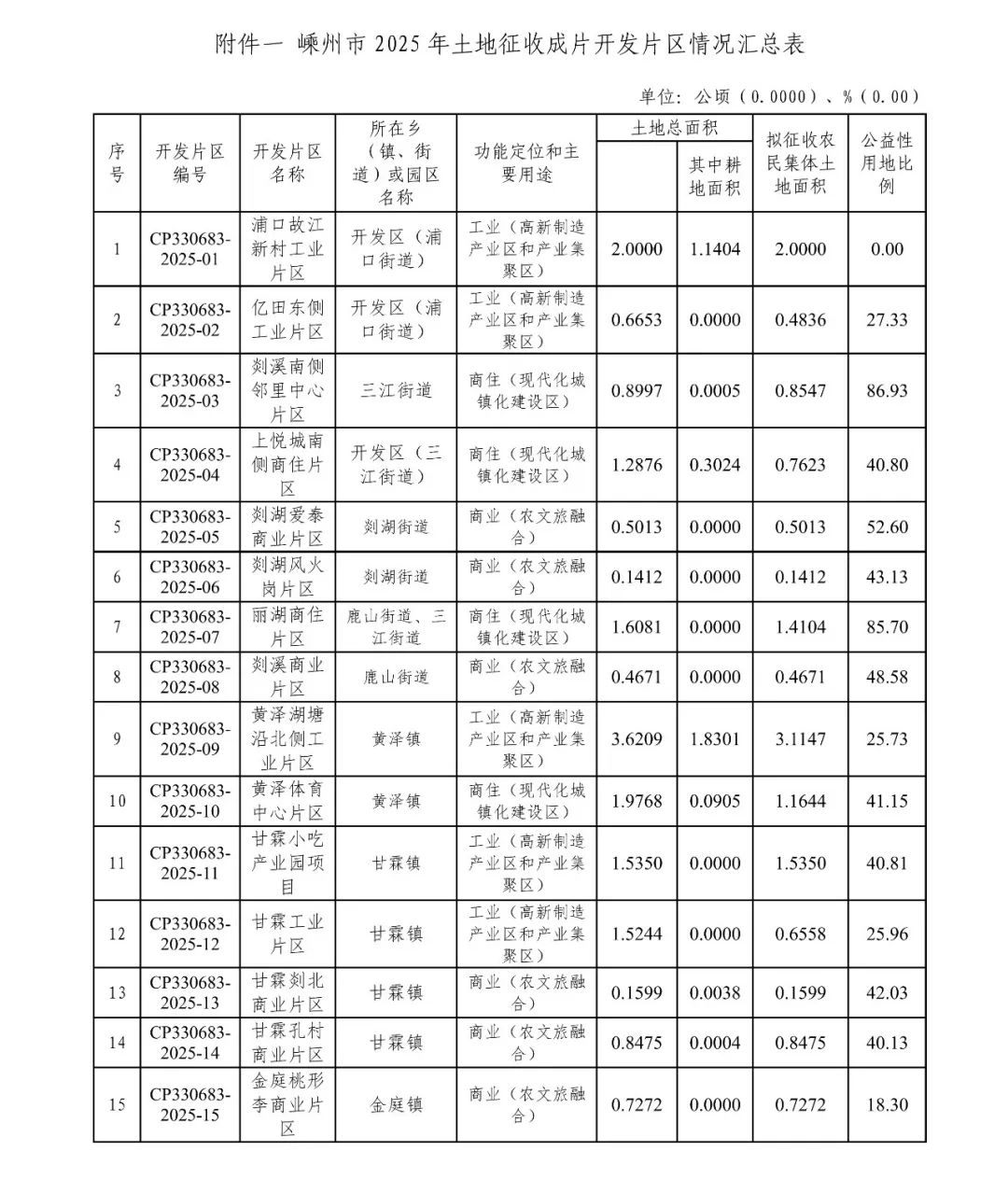 根據《中華人民共和國土地管理法》、自然資源部《土地征收成片開發(fā)標準》(自然資規(guī)〔2023〕7號)、《浙江省自然資源廳關于印發(fā)浙江省土地征收成片開發(fā)方案編制與審核辦法》(浙自然資規(guī)〔2024〕5號)等文件要求,結合我市經濟發(fā)展和城市建設等需要,擬定了我市2025年土地征收成片開發(fā)方案,現將方案進行公示,公示期間,對該方案有意見或建議的請在公示期內以書面、信函等法定形式向嵊州市自然資源和規(guī)劃局反饋。