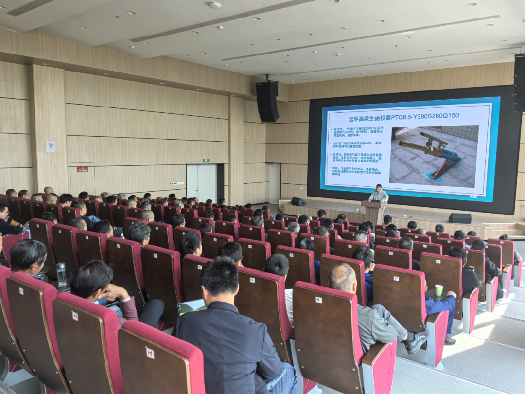 理論課堂上,物資裝備供應(yīng)企業(yè)專業(yè)技術(shù)人員對2024年下發(fā)的基層防災(zāi)應(yīng)急救援物資裝備進(jìn)行了系統(tǒng)性講解?!斑@款設(shè)備采用壓縮氣體動力,有效拋射距離可達(dá)數(shù)十米,遇險時能快速建立生命通道?!蓖ㄟ^大屏幕投屏,全方位地向?qū)W員展示救生拋投器的構(gòu)造與功能。理論授課內(nèi)容涵蓋水域救援、地震地質(zhì)災(zāi)害處置、森林火災(zāi)撲救及綜合保障四大類裝備的技術(shù)原理與操作規(guī)范。